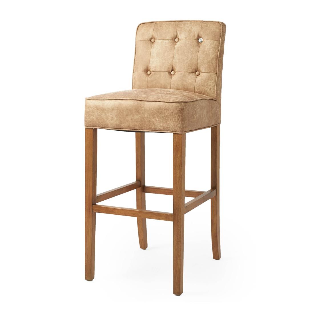 Flot høj polstrede barstol med krog på ryggen så du kan hænge en jakke eller en taske. Barstolen her er den høje model som passer til et højt barbord. Barstolen fås i flere farver i den lækre kvalitet pillini læder som er en blød og slidstærk tekstil læde (Læs mere)